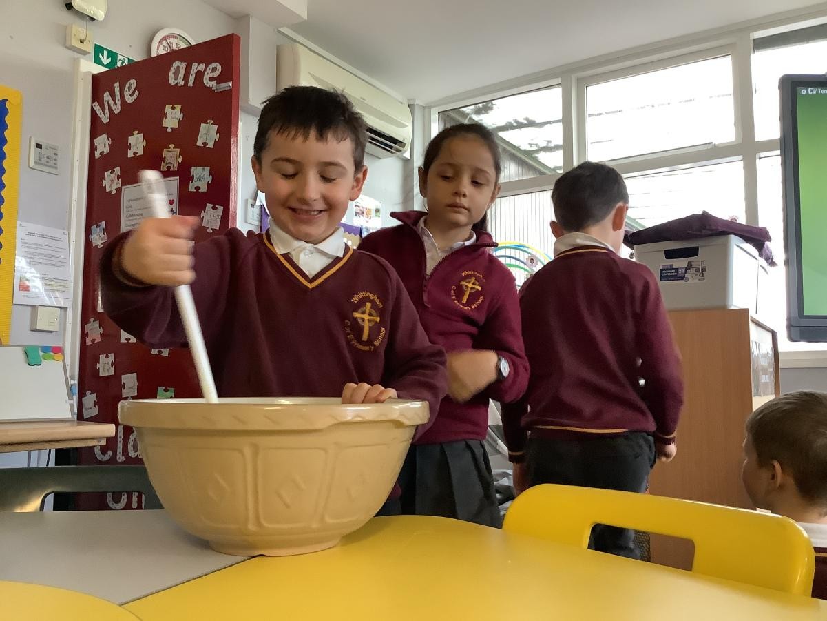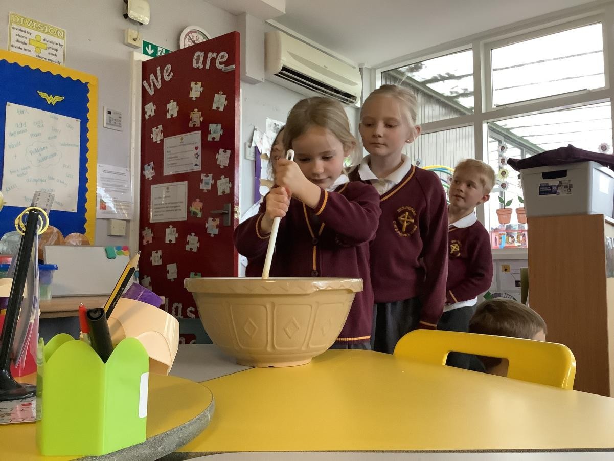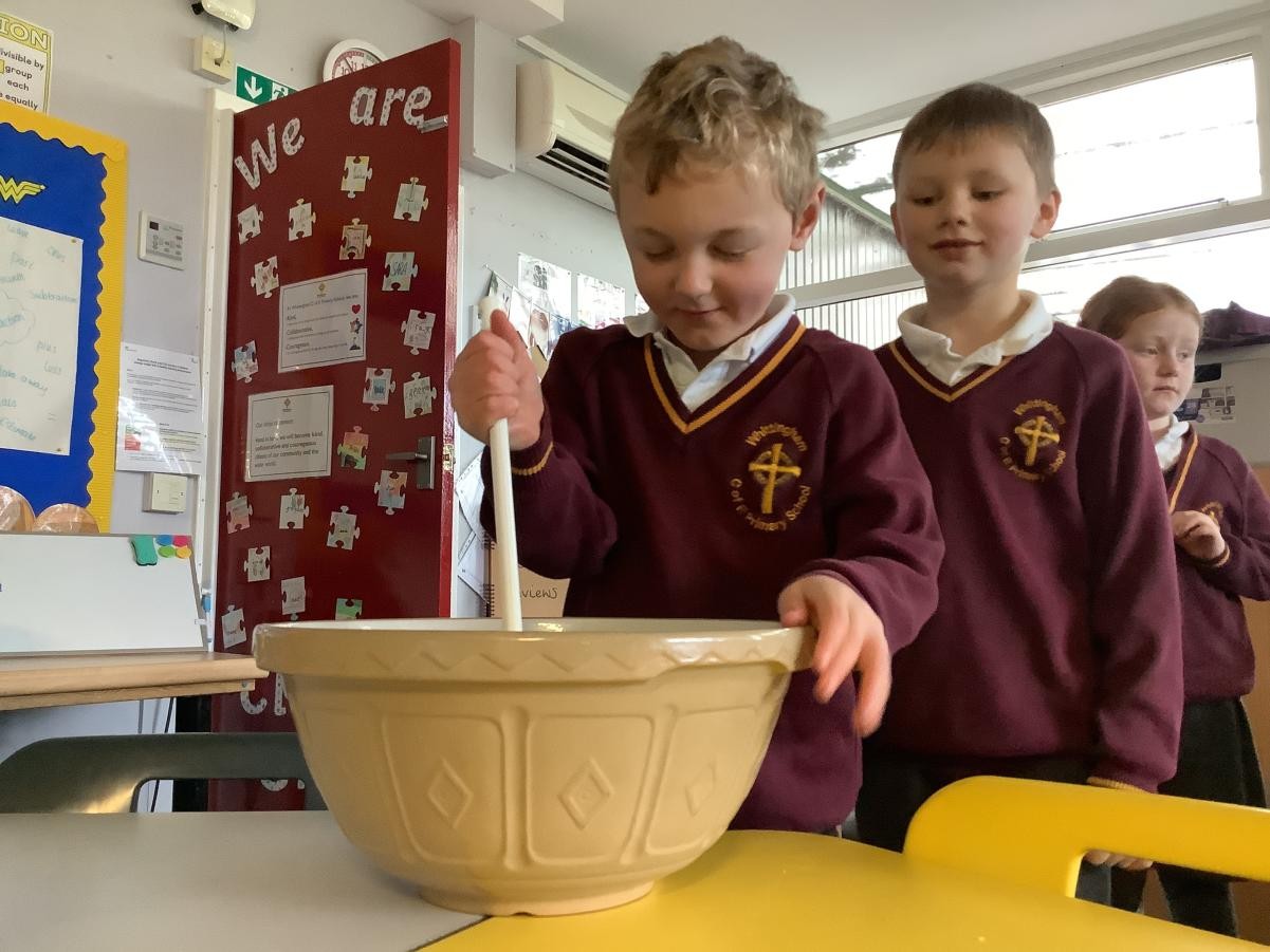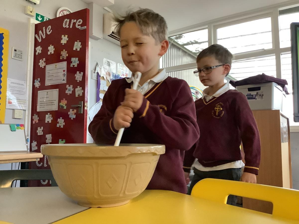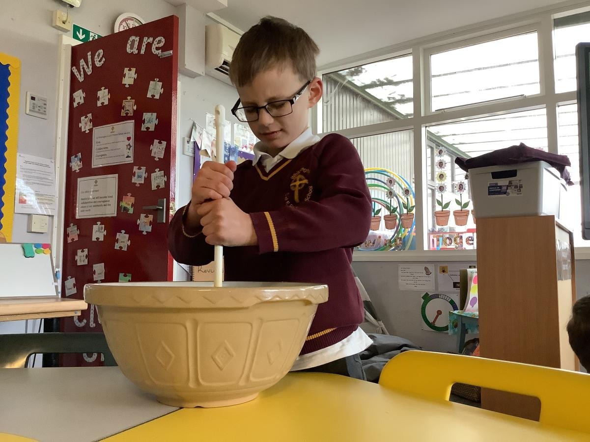 Mrs Arkle was making our Christmas Puddings in preparation for our Christmas dinner before we break up for the Christmas holidays. As our tradition, we added our own wishes to the pudding mixture and sang the Christmas pudding song.