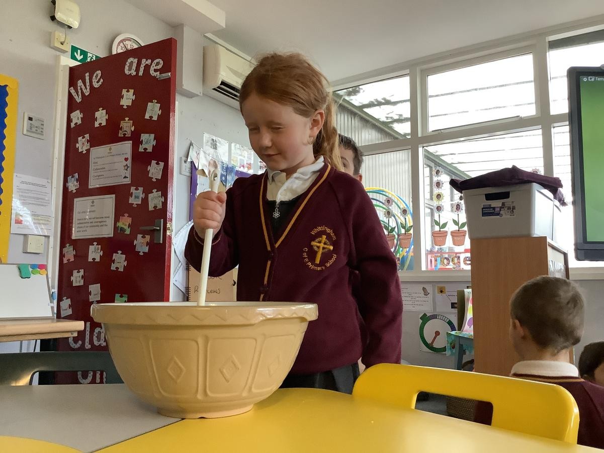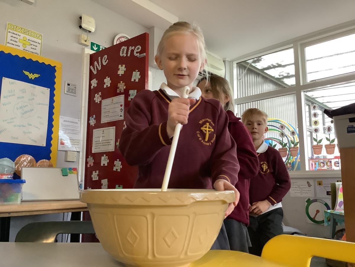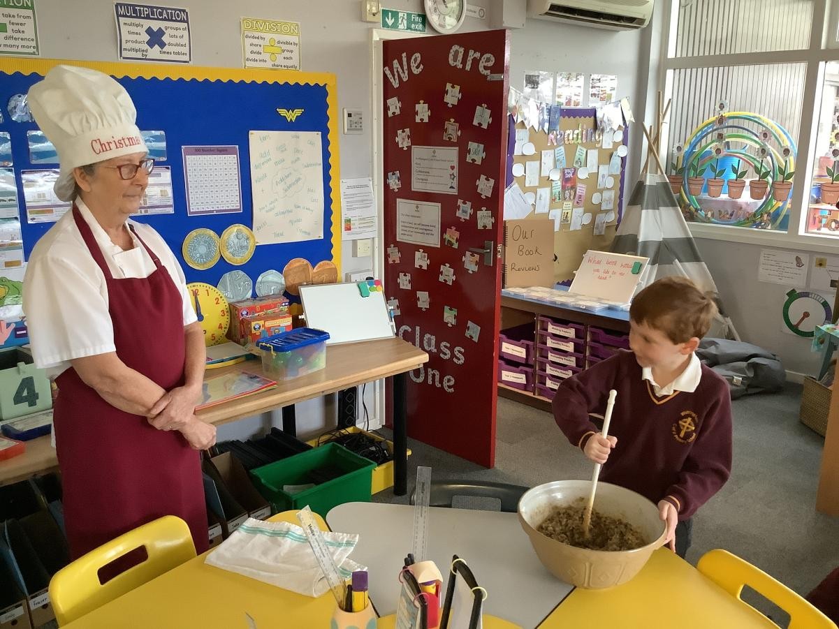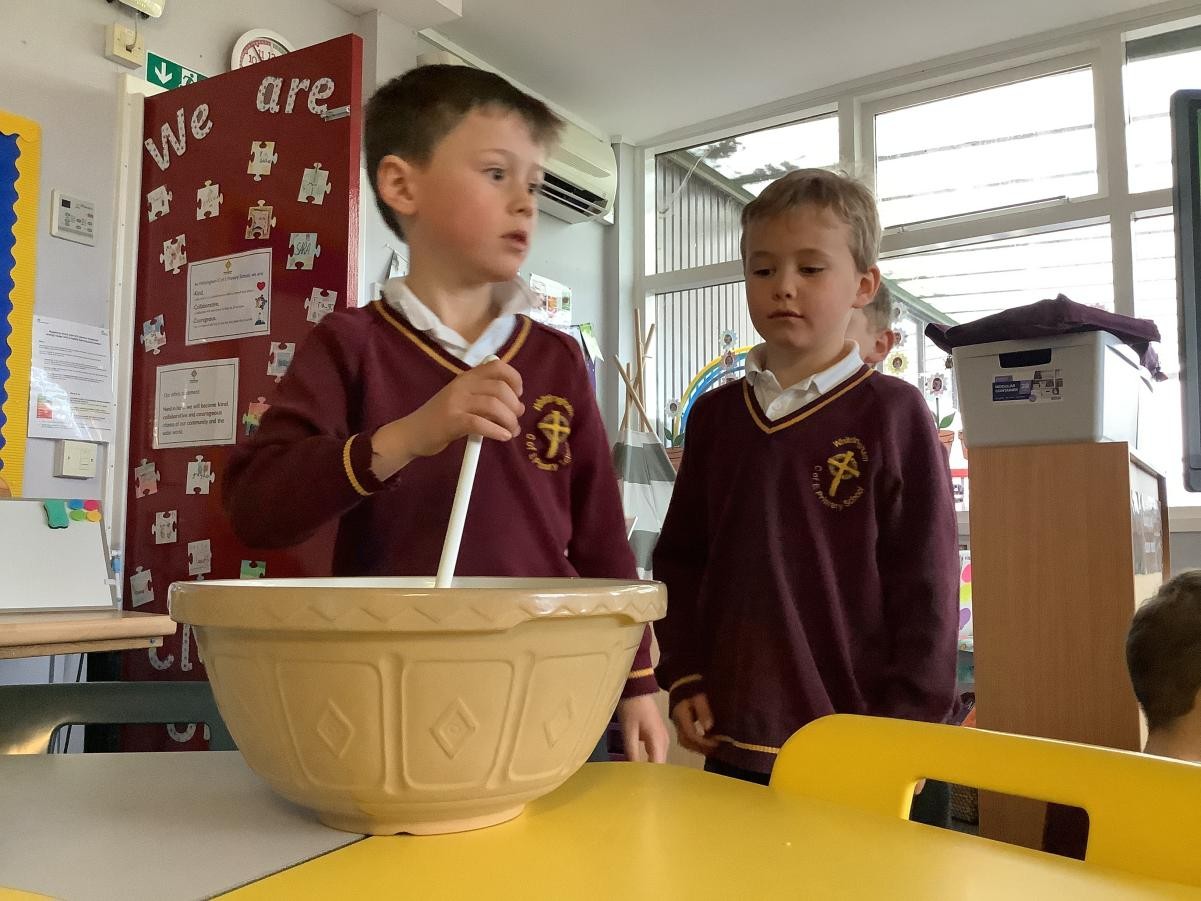 Mrs Arkle was making our Christmas Puddings in preparation for our Christmas dinner before we break up for the Christmas holidays. As our tradition, we added our own wishes to the pudding mixture and sang the Christmas pudding song.