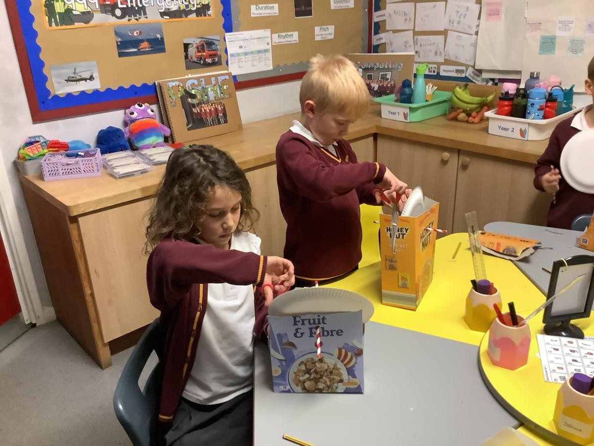 This half term in Design Technology, we have been looking at mechanisms with a focus on wheels and axles. We started by looking at a variety of different everyday objects that use wheels and axles for movement before thinking about fairground wheels and how they compare. For our project, we created our own Fairground wheel and after designing our own used cereal boxes and milk cartons to bring our creations to life.