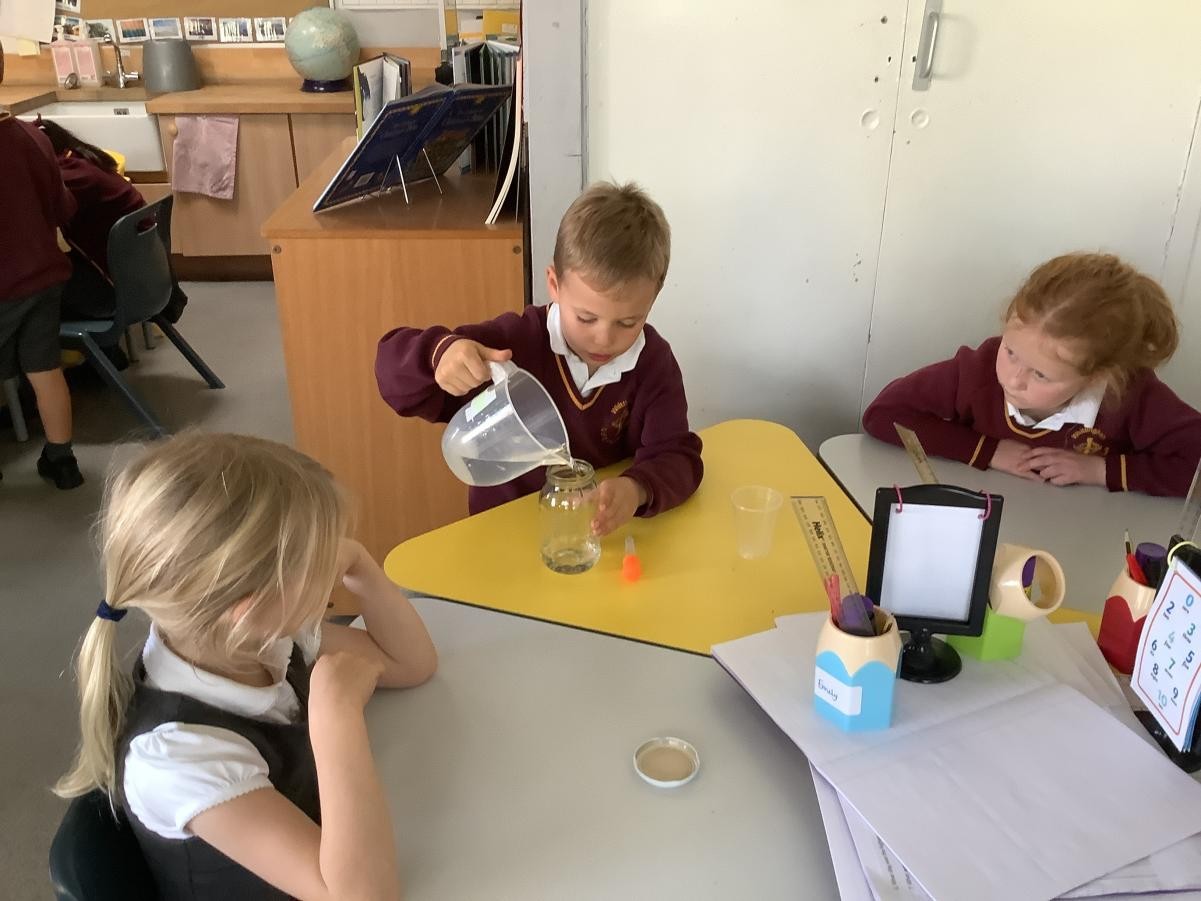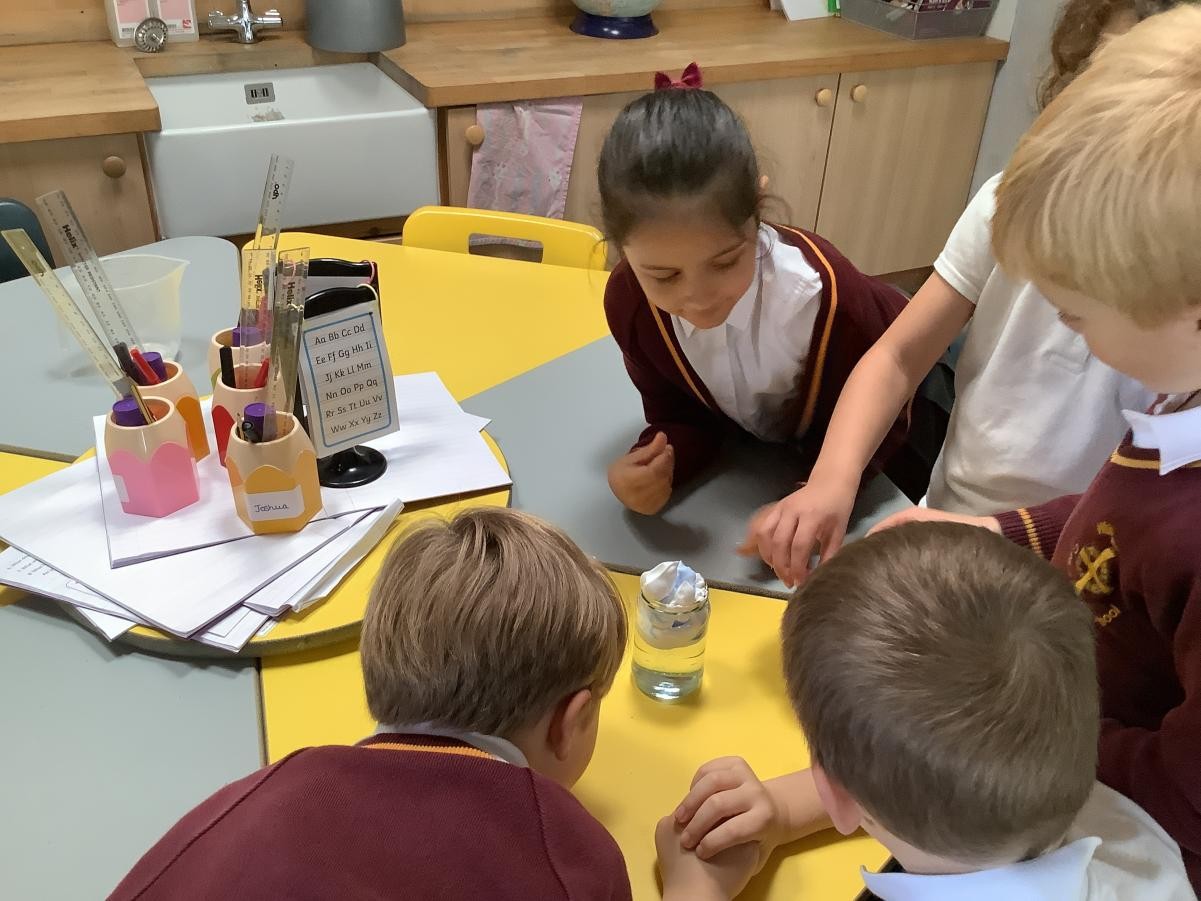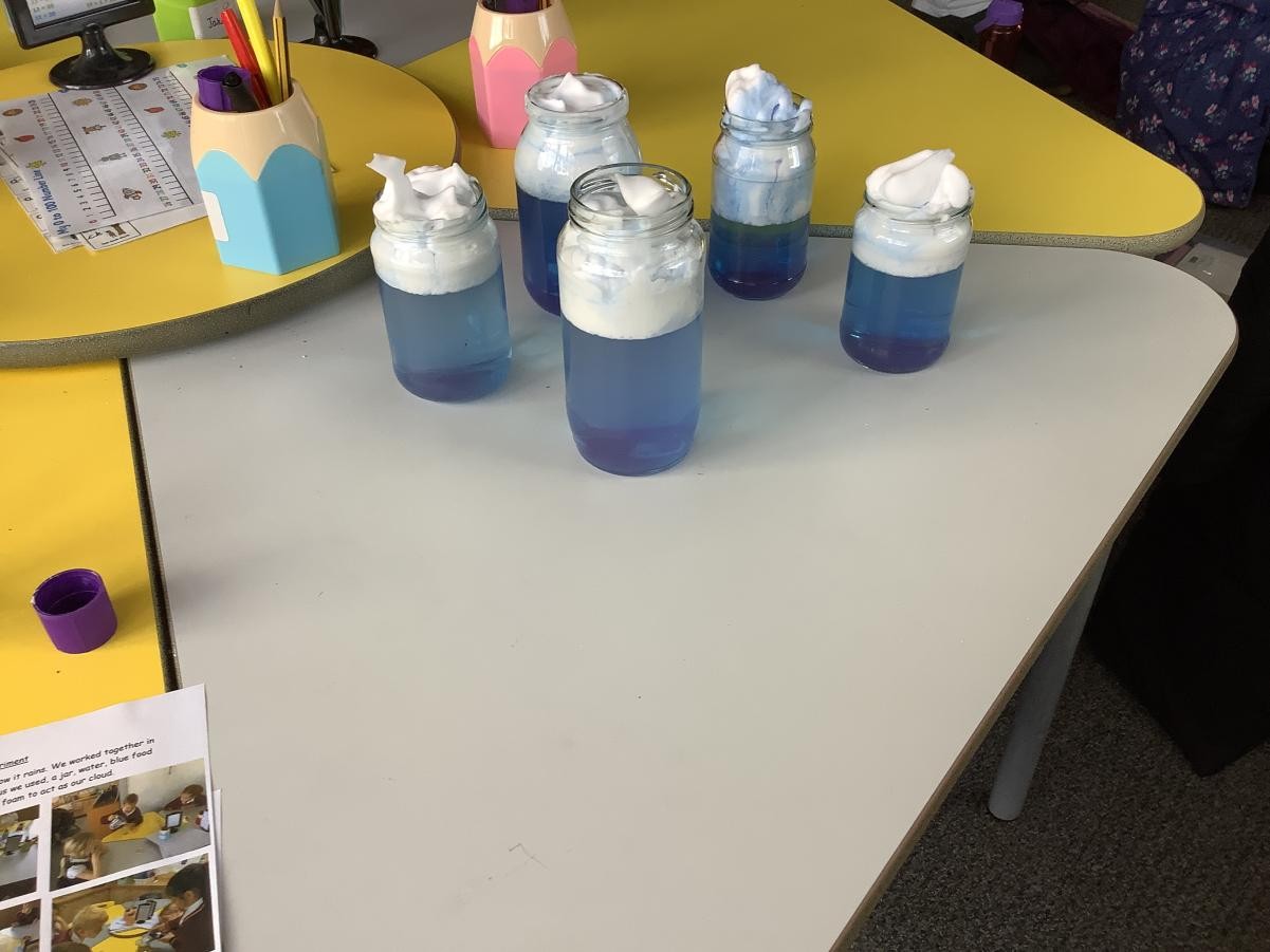 In Science this half term, we have been exploring the weather. We have looked at the different seasons and how the weather changes throughout the year. We have a good understanding about the equator, northern hemisphere and southern hemisphere and that we live in a temperate climate where we have four seasons. We have become weather experimenters and this week created a rain cloud in a jar to show how and why it rains.