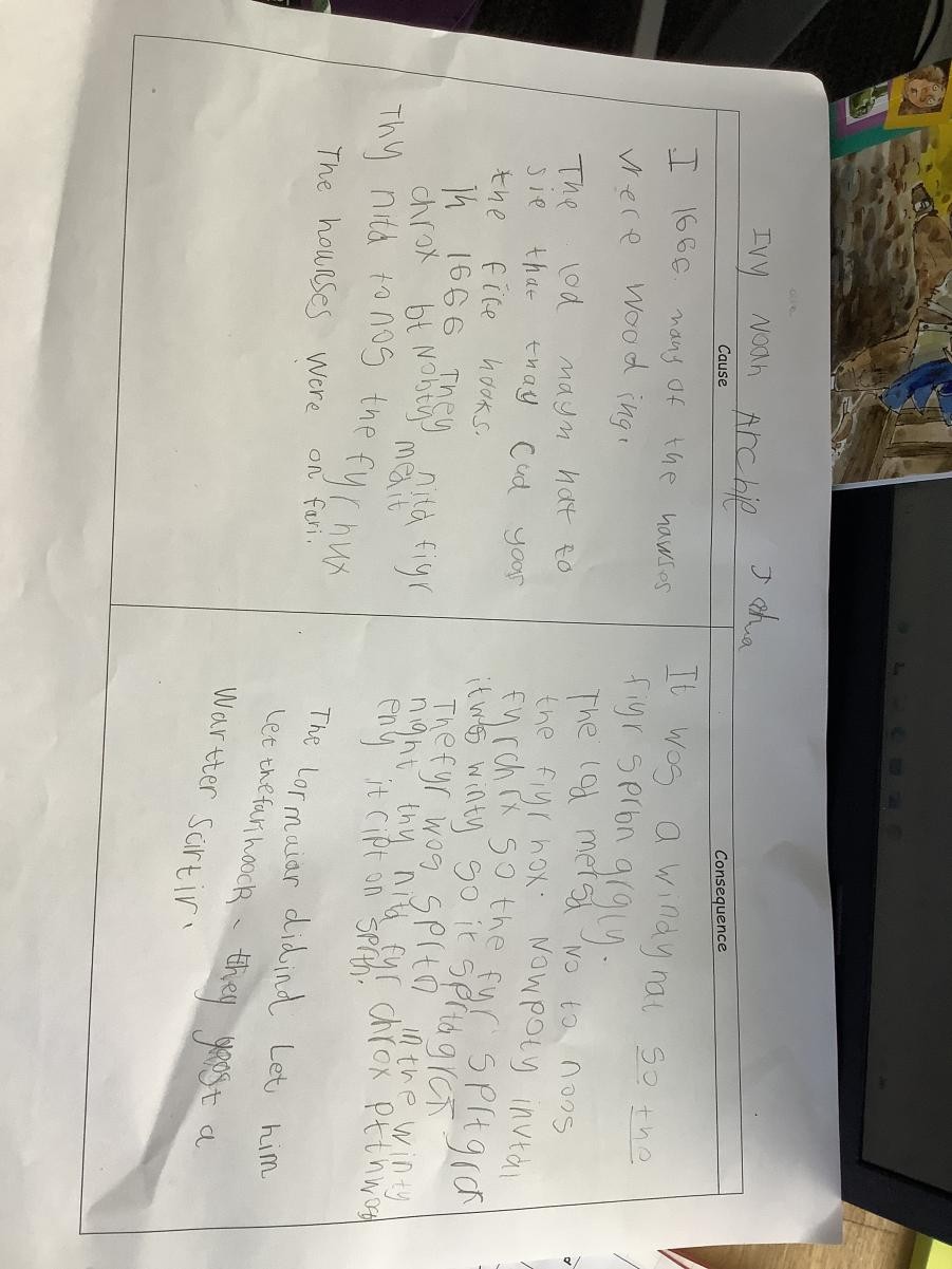 In History this half term, we have been learning about the Great Fire of London. We have explored when the Great Fire of London happened, what it was like in 1666, how the fire spread so easily and the impact that the fire had on the future.