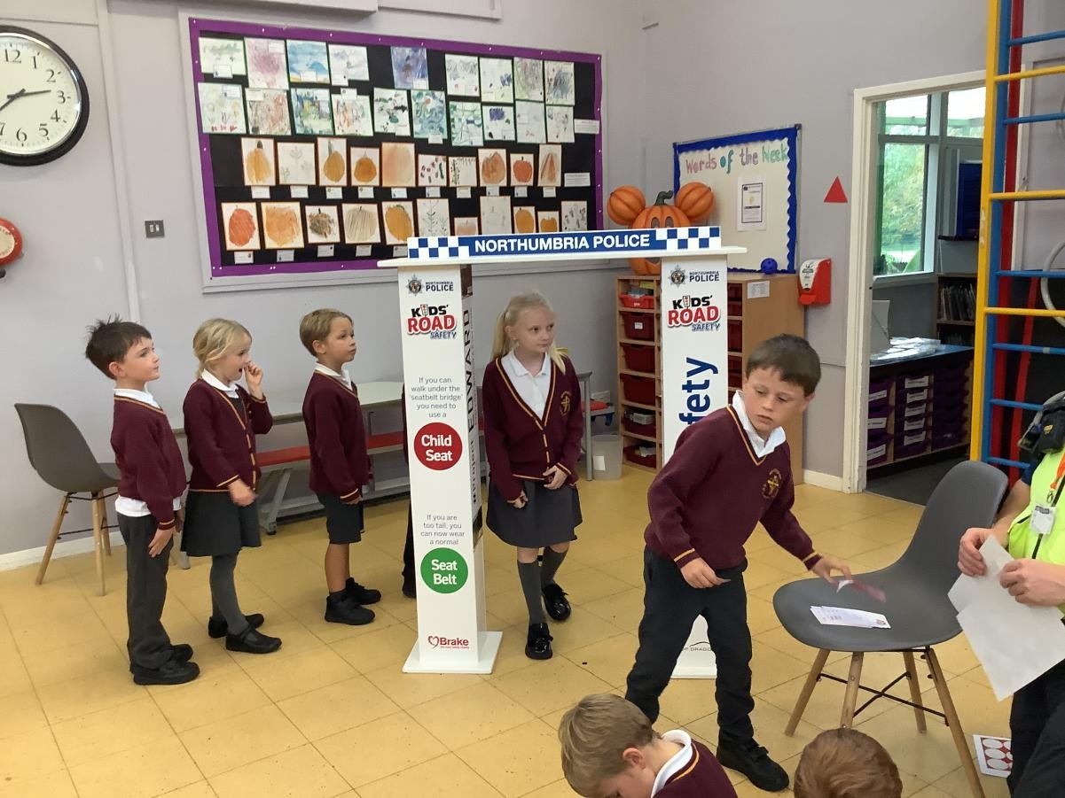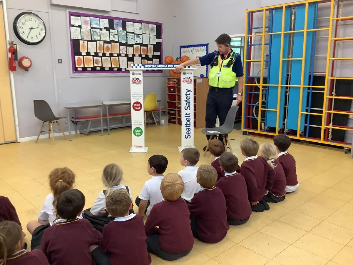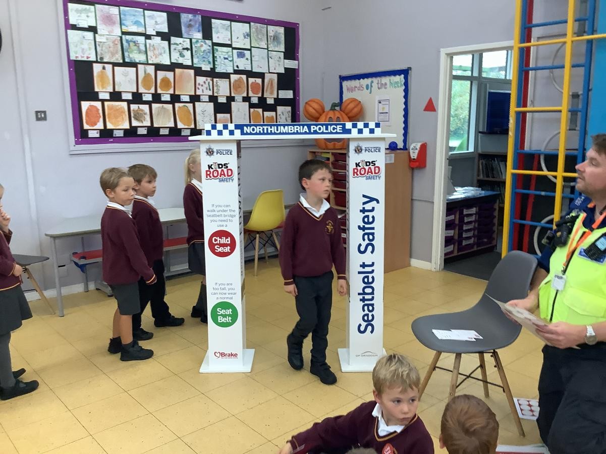 This week in PSHE, we had the local PCSO come and talk to us about seat belt safety and why it is important to be wearing our seat belts when travelling. He talked to us about where the seat belt should sit on our body and about the use of car seats. He showed us a fabulous video about Northumbria police and measured us to see if we should be in a car seat or able to to a seat belt with booster seat.