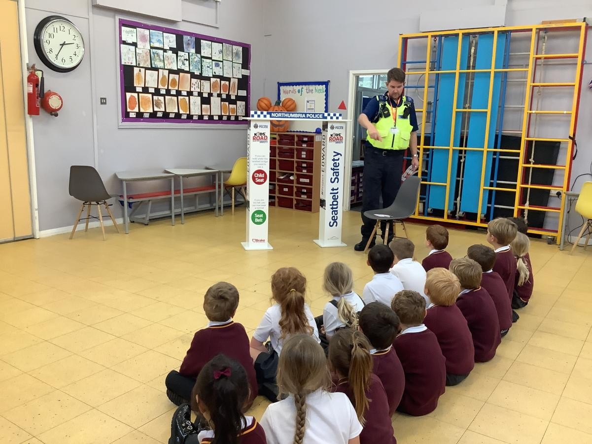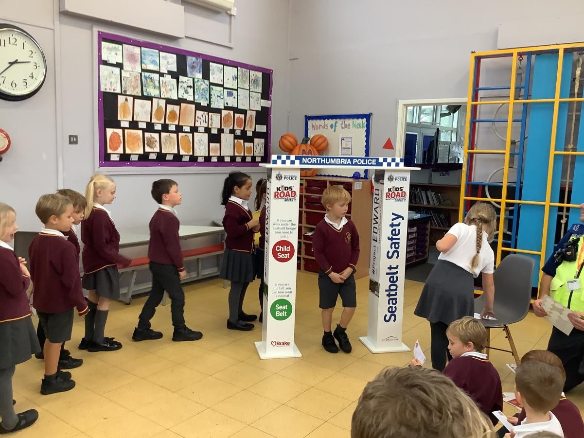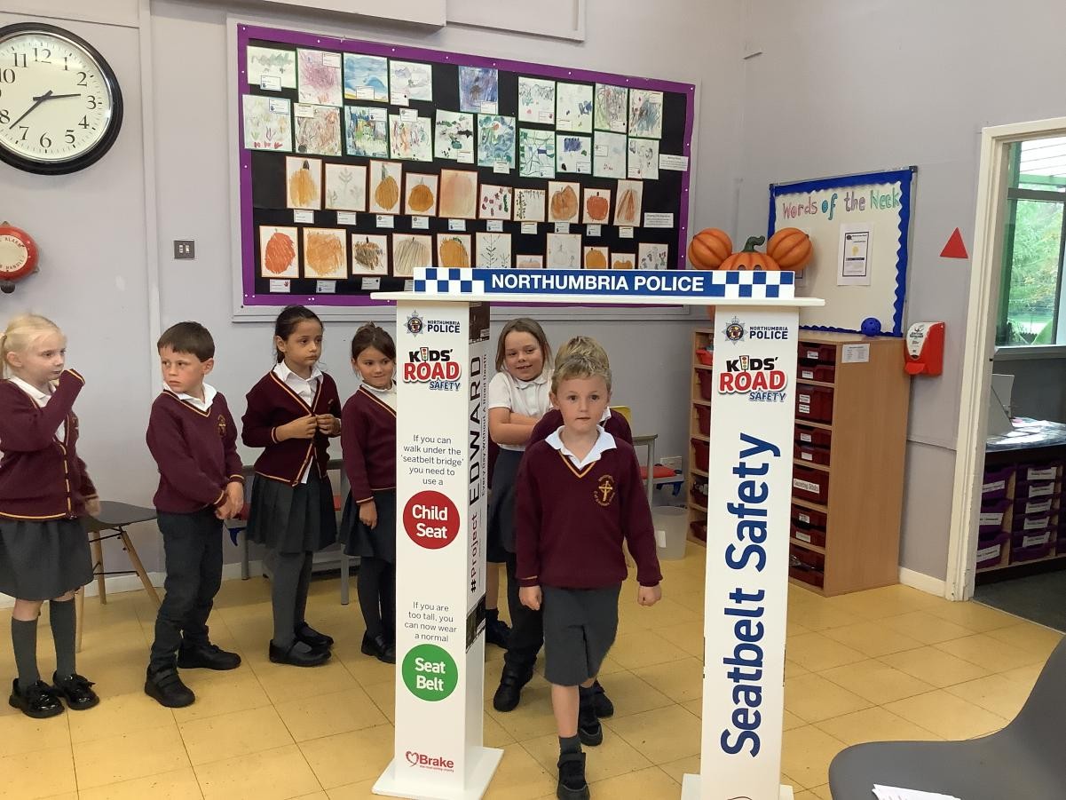 This week in PSHE, we had the local PCSO come and talk to us about seat belt safety and why it is important to be wearing our seat belts when travelling. He talked to us about where the seat belt should sit on our body and about the use of car seats. He showed us a fabulous video about Northumbria police and measured us to see if we should be in a car seat or able to to a seat belt with booster seat.