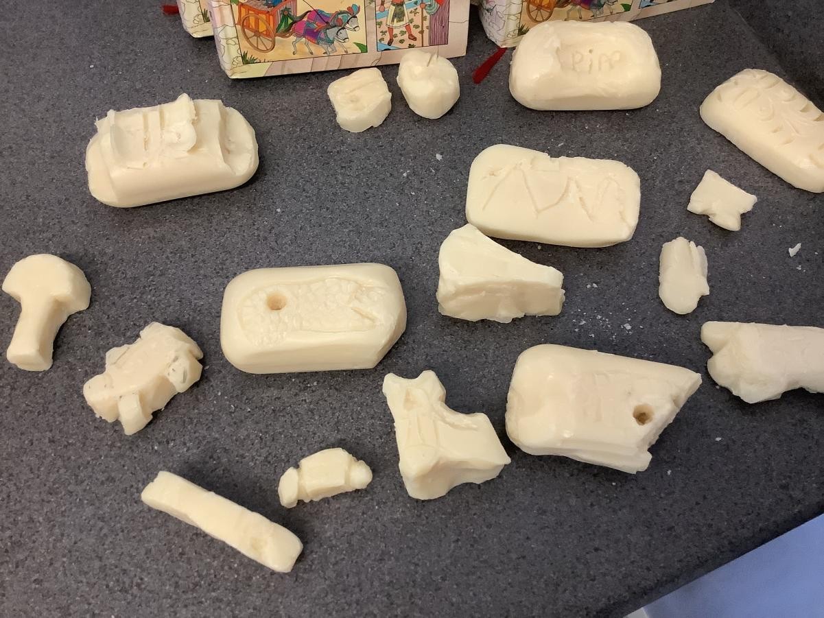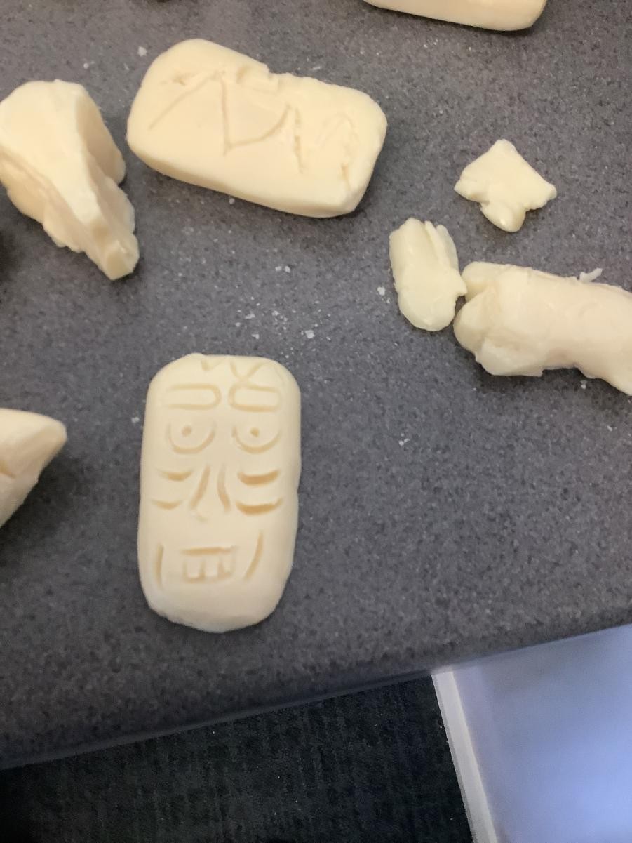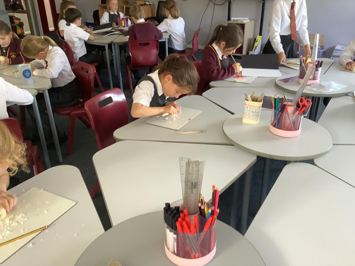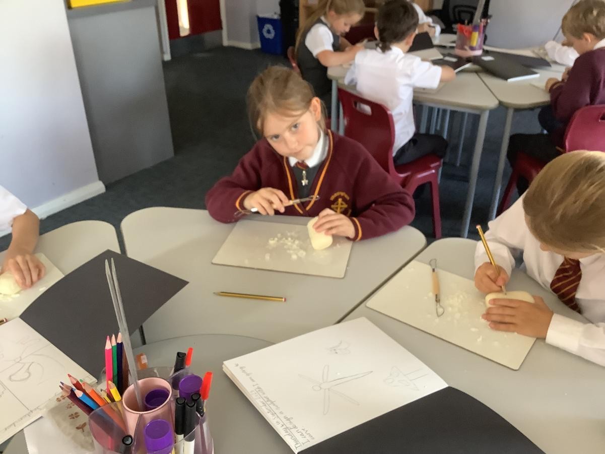 We have been looking forward to making soap sculptures. First we looked at sculptures by Henry Moore and Barbara Hepworth for inspiration. Once we started we soon realised that it wasn’t as easy as we thought but we persevered and made our first ever soap sculptures.