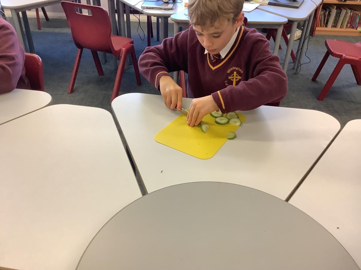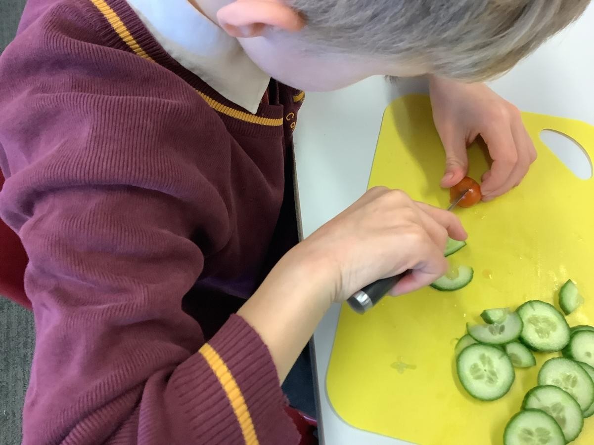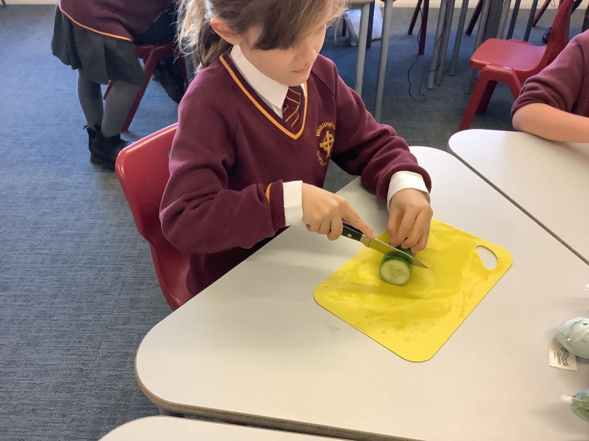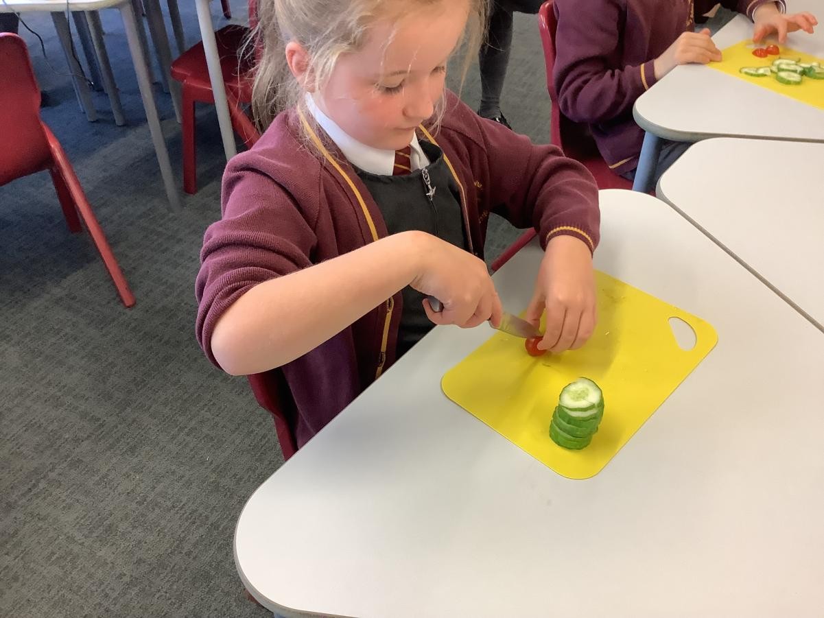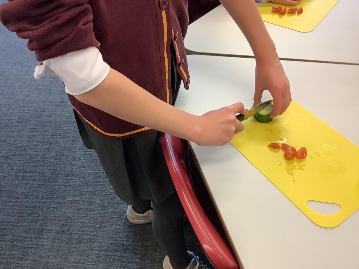 In our DT lessons we are thinking about eating seasonal food and we will be making a seasonal vegetable tart. Today we learned how to peel and cut different vegetables safely, we used the claw grip and the bridge hold. We also learned to peel away from our body.