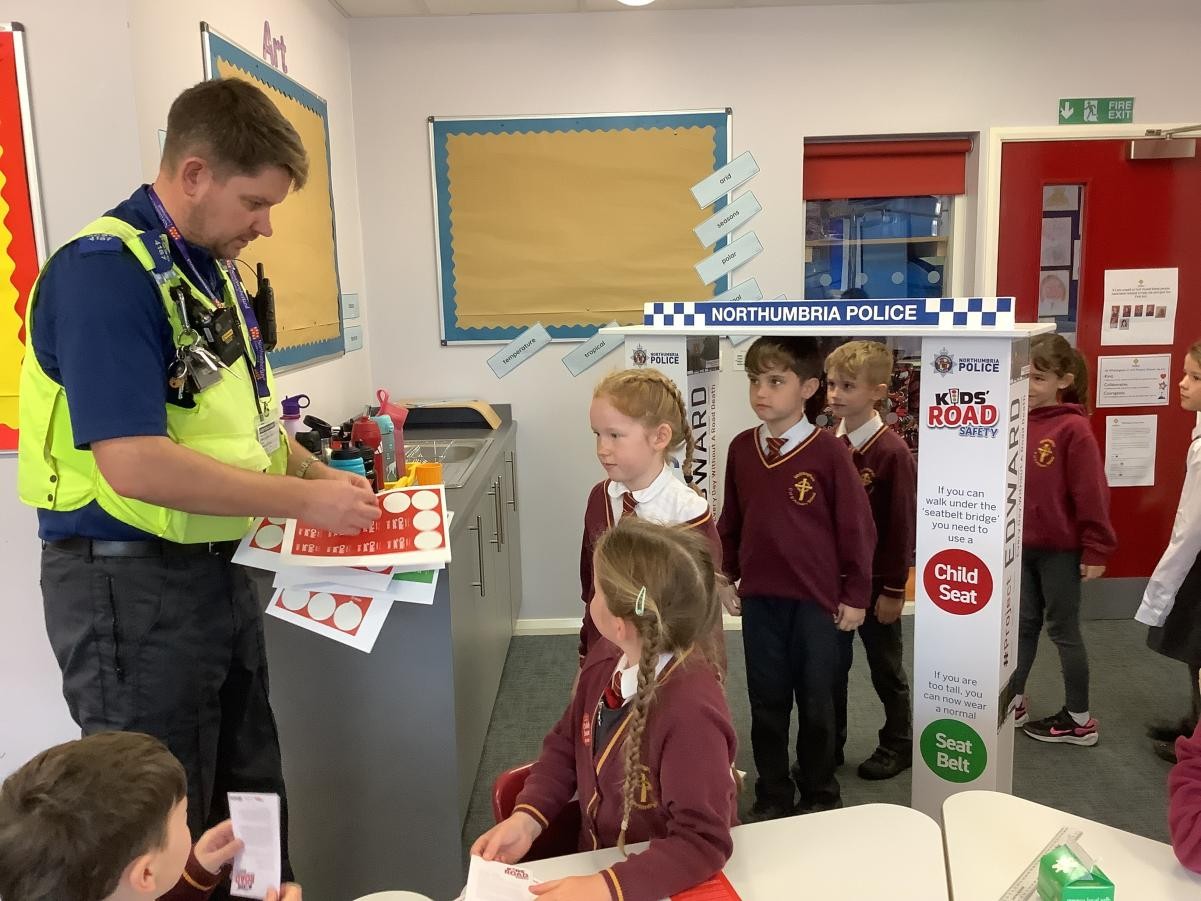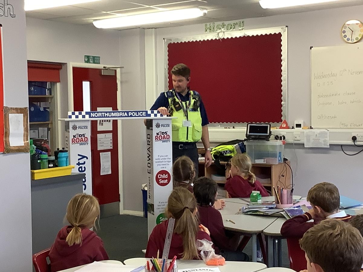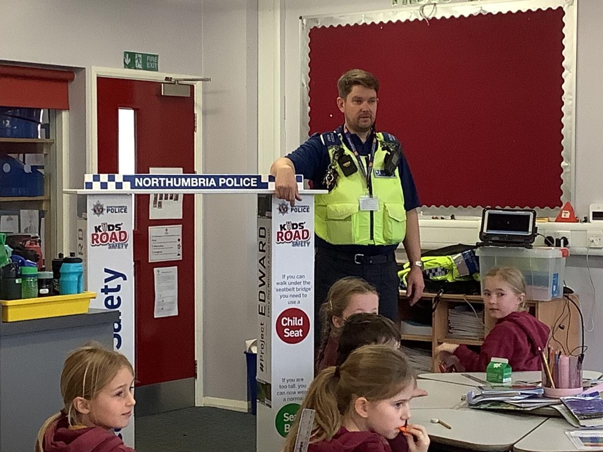 We had a visit from a local police officer. He talked to us about road safety and measured us to see if we still needed to use a car seat. Then we watched a video and talked about all of the different jobs that police officers do. It was very interesting.