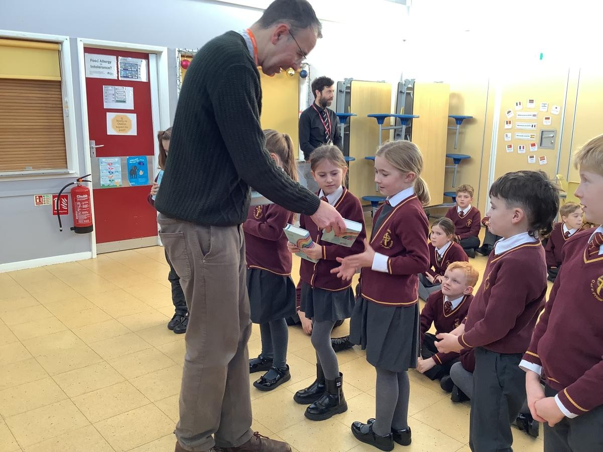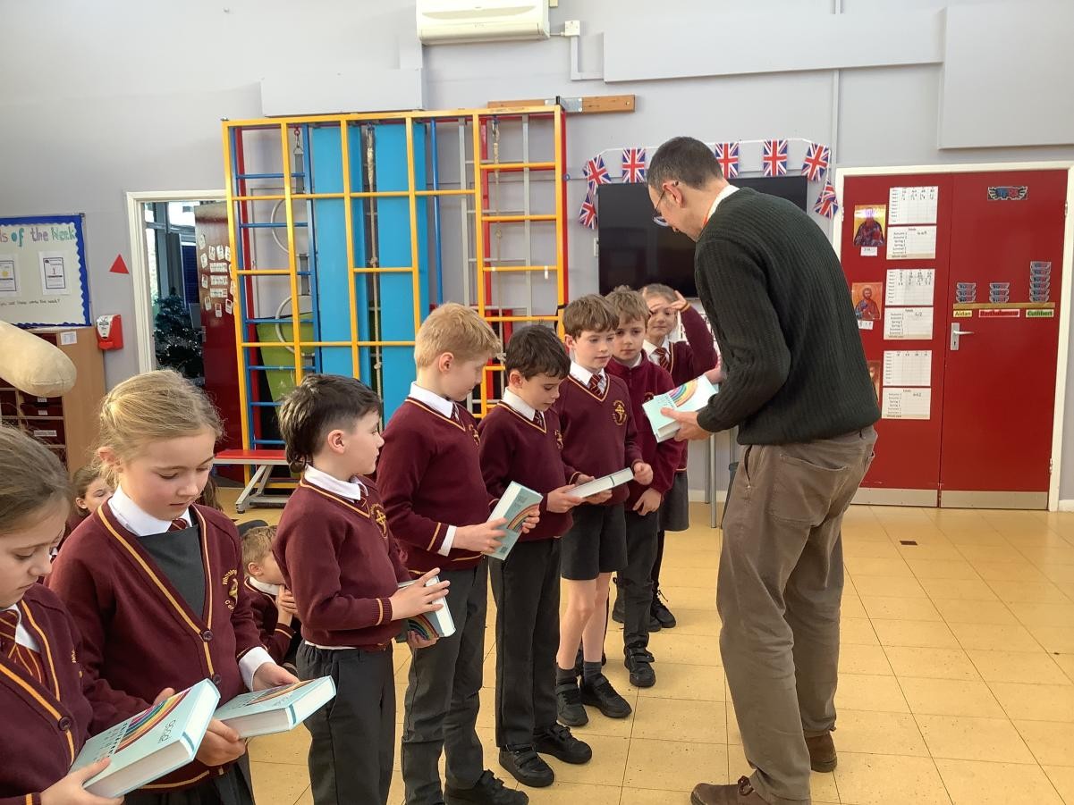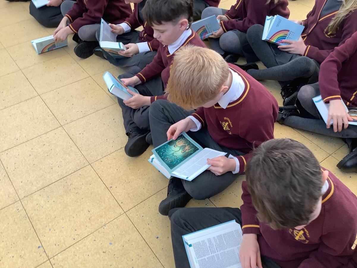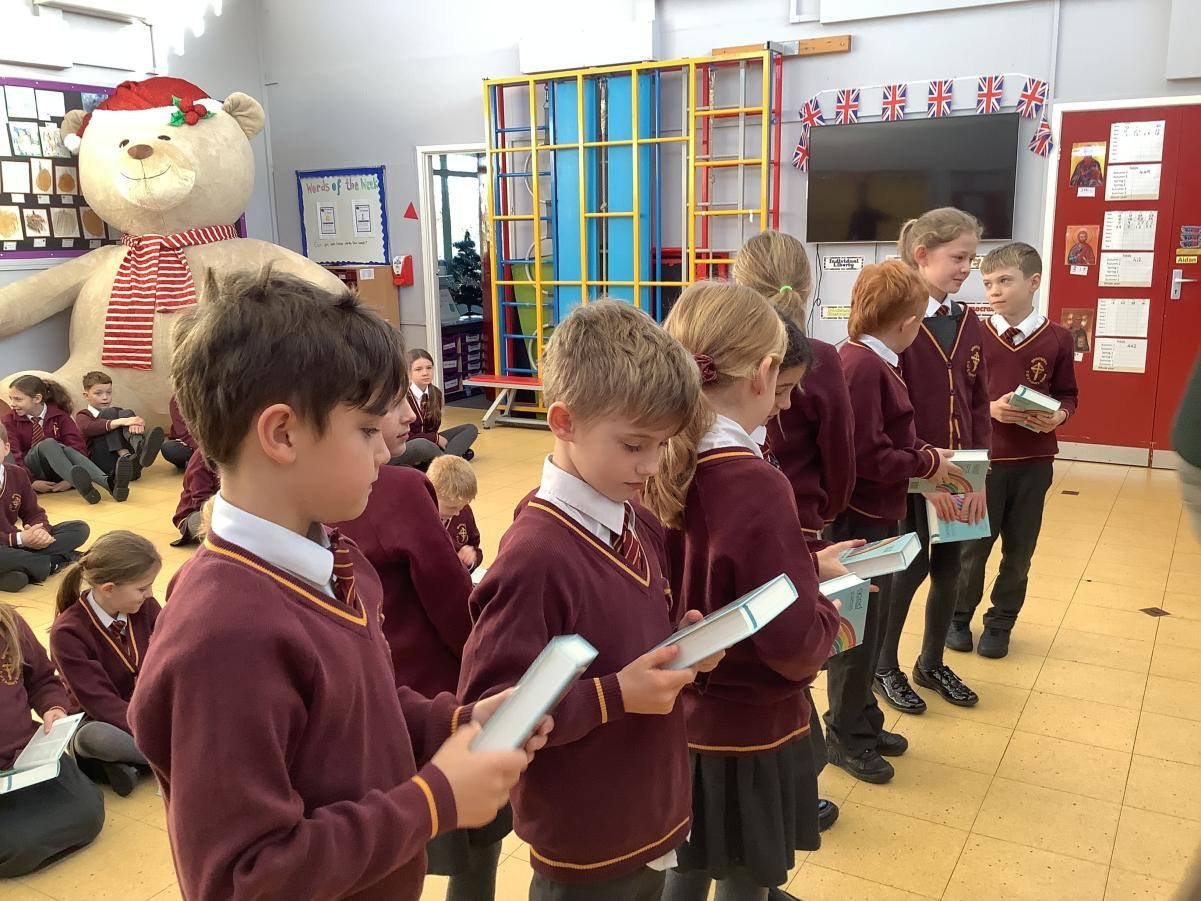 Today, we were so lucky to receive a gift of a Bible from St Bartholomew’s Church and the Whittingham community. Rev’d Rich Townsend came into school to present us with our individual Bibles, we will be able to use them in school and when we leave in Year 6 we can take them with us.Â