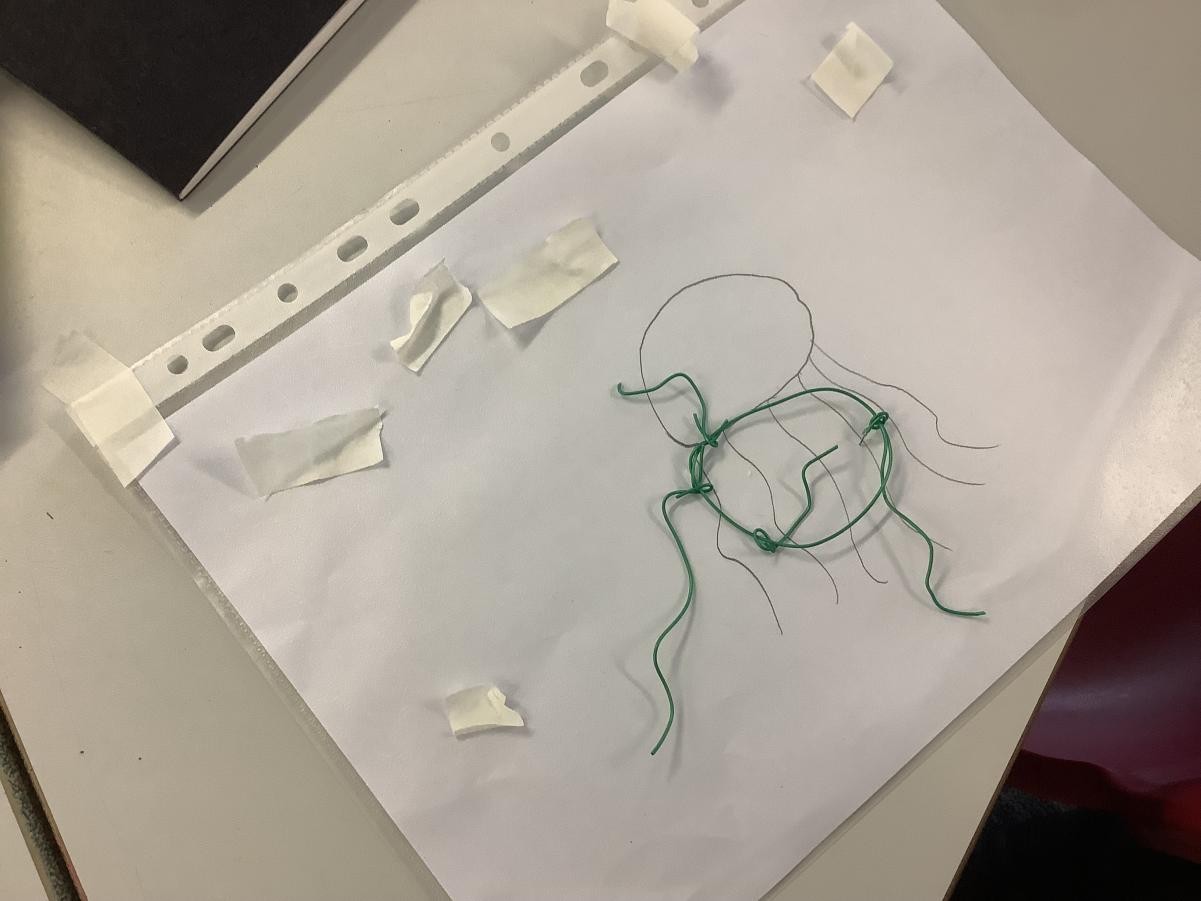 Continuing our work on sculptures we have been using wire to make our latest works of art. First we experimented with the wire to discover which shapes, curls and bends we could make.