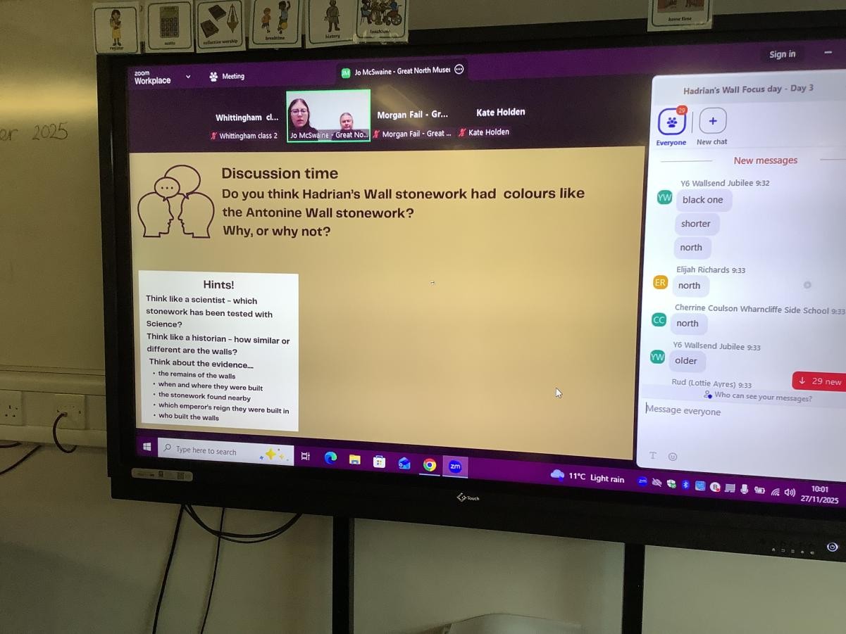 This week, we have participated in 8 online workshops organised by The Great North Museum. We have learned lots about Hadrian’s Wall and the soldiers who lived in the forts along the wall from experts from the museum, Newcastle University, English Heritage, Northumberland National Park, the Tullie Museum and many more. We even met a Roman soldier! It was a fantastic way to learn and now we will follow up these sessions through lessons in our classroom.